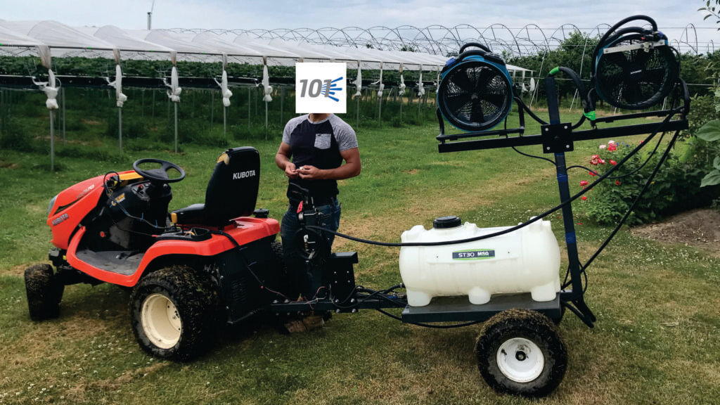 - The diesel exhaust from both the sprayer and the tender cart is not ideal. Applicators wear respirators, and the greenhouse fans tend to dilute the exhaust, but a battery system (perhaps like a drone) would be preferable to power the drive electrically.