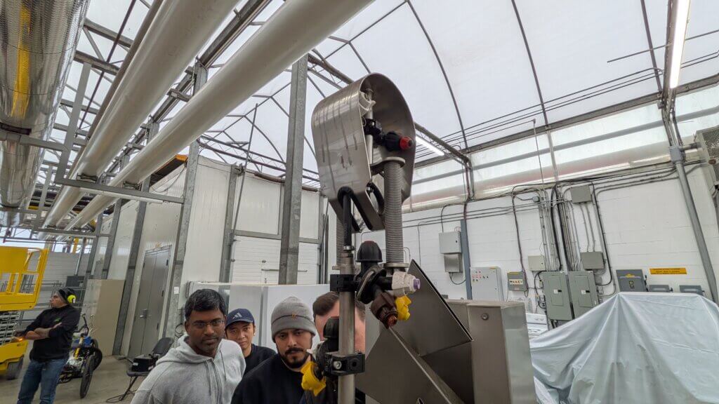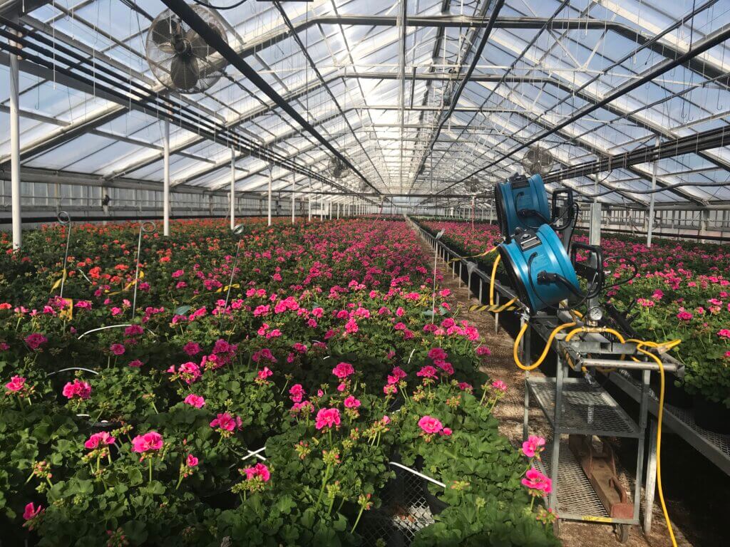 As it turns out there’s a very good reason engineers use computational fluid dynamics to design air-assisted sprayers. We were ultimately beaten by an uneven greenhouse floor crowded with obstacles, a stiff canopy of geraniums, and the inverse square law, which states: “The farther away an object is from an effect, the less change can be observed in the object”. So, when we weren’t banging into things we were barely moving leaves two meters away. This rig now has a new life circulating hot air in a boiler room.